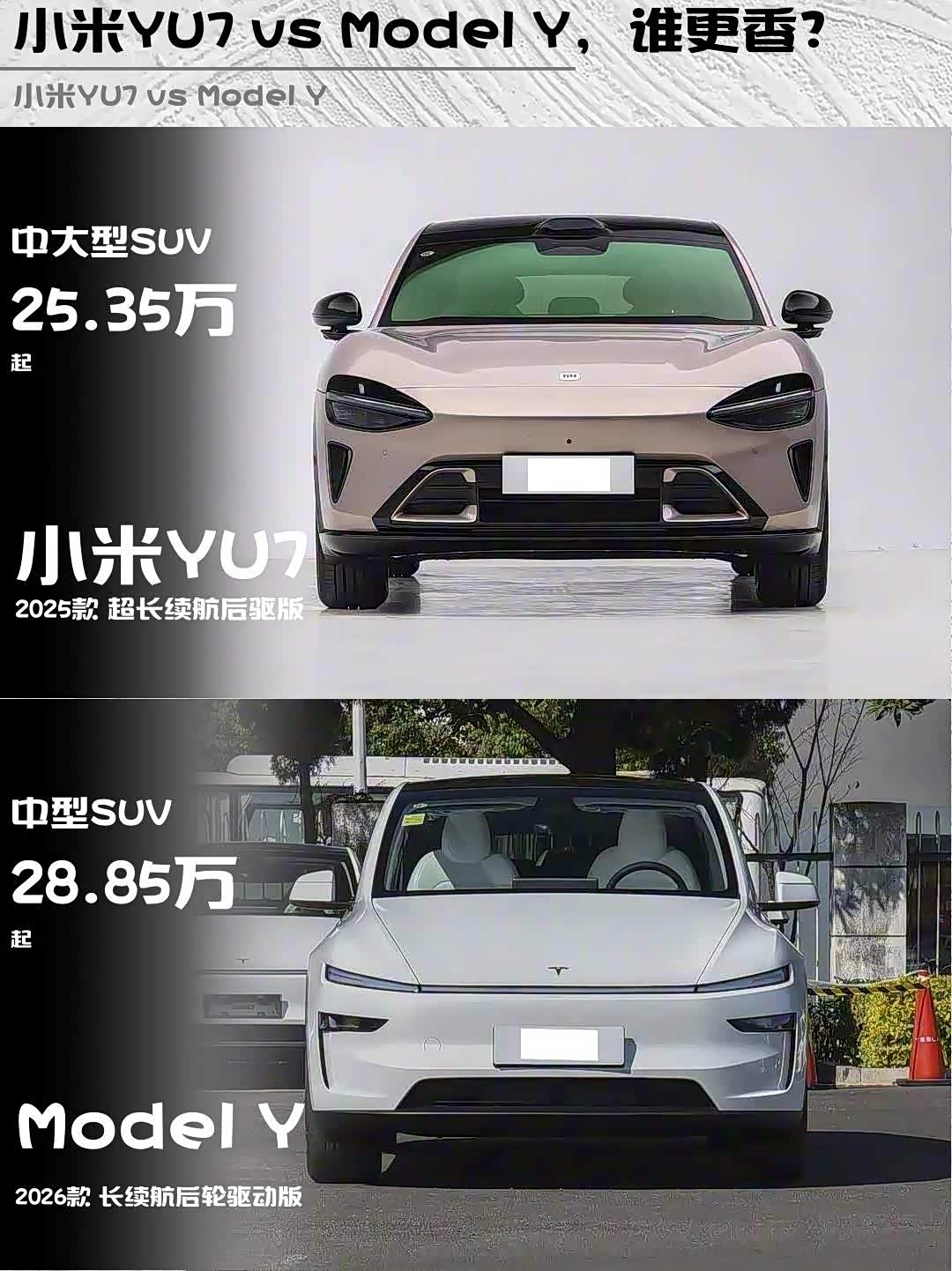 小米YU7 25.35万标配激光雷达+双腔空悬,比特斯拉便宜3.5万!首批车主还送零重力座椅。Model Y选个白色车漆+20寸轮毂轻松破30万,但超充网络覆盖确实香。