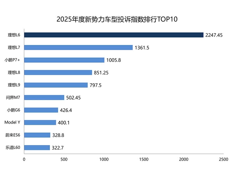 第一名:理想L6 投诉指数2247.45
