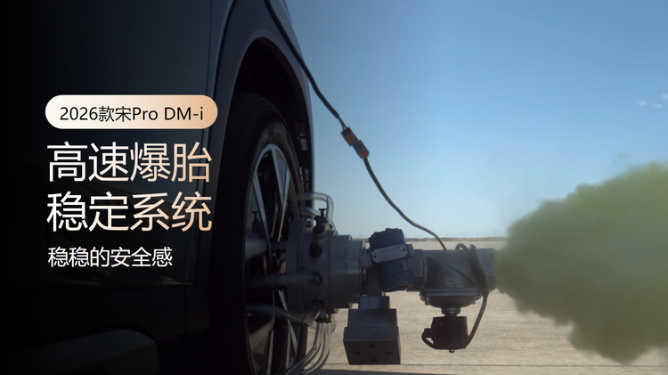 安全是家庭出行的基石,2026款宋Pro DM-i新增了高速爆胎稳定控制系统。它能在车辆高速行驶突发爆胎的危急瞬间,实现毫秒级响应,通过对驱动轮和制动系统的协同控制,有效抑制车辆跑偏与失控,将车辆稳定地减速至安全状态。从主动安全的AEB、盲区监测,到被动安全的73%高强度钢车身与6安全气囊,构建了从预防、干预到保护的全维安全堡垒,为每一次家庭出行保驾护航。