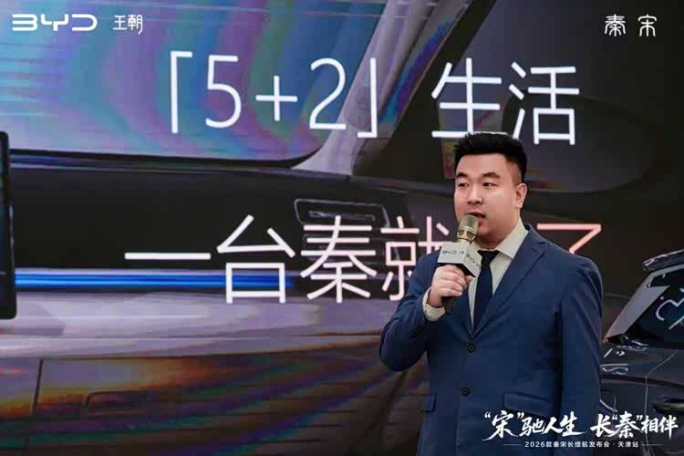 发布会上,比亚迪汽车王朝网京津冀战区天津大区经理王子豪先生登台致辞。他回顾了比亚迪坚持“用技术创新满足人们对美好生活的向往”的品牌初心,并强调,基于第五代DM-i技术的强大实力,2026款秦L与秦PLUS DM-i全系续航突破210KM,宋Pro DM-i更达到220KM,这标志着王朝网主流车型已全面进入“纯电续航200KM+时代”。王子豪先生表示,此次升级旨在“将最好的技术,以最具竞争力的价格,带给最广大的家庭用户” ,让长续航、低能耗、高智能成为每个家庭的出行标配。