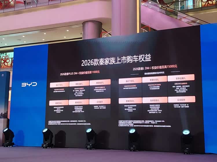 为回馈蓉城消费者,现场公布了限时购车权益(有效期至1月31日):秦L DM-i享4000元购置税补贴,云辇型免费赠3000元TBC系统,综合权益至高1.5万元;秦PLUS DM-i享至高4000元置换补贴+3000元车色赠送+4000元贴息,权益至高1.1万元;宋Pro DM-i可享至高5000元置换补贴及终身免费OTA升级服务,进一步降低购车门槛。