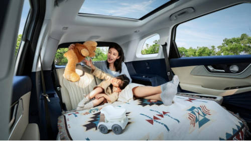 此外,奇瑞风云T9还能够满足家庭自驾途中的临时休憩需求,其二、三排座椅支持一键放倒功能,仅需几秒即可形成一个约2.1㎡的平整大床。这一设计让车辆在服务区、景区停车场等场所能够快速变身临时休憩空间,为老人、孩子提供舒适的休息环境,有效缓解长途旅途的疲惫,大幅提升了家庭自驾的出行品质。