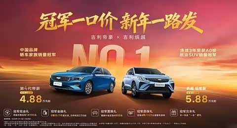 车家号·0浏览·2026-01-19 10:37 · 安徽近日,吉利汽车官方透露,旗下 帝豪(参数|询价)与吉利缤越正式上线“冠军一口价”新年限时促销活动,帝豪的起售价低至4.88万元,缤越的起售价为5.88万元。本次活动限时到2月28日结束。
