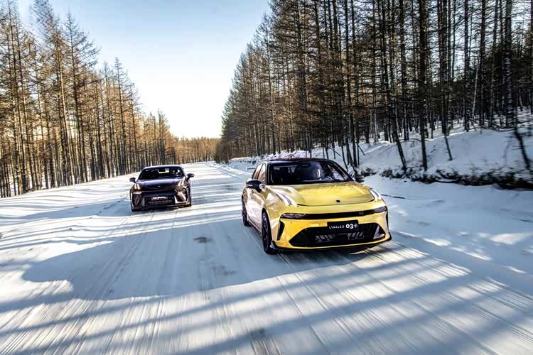 在冰雪路面上,领克03家族展现了其“冬日战神”的硬核实力。新领克03+性能进阶版搭载的2.0TD T6双增压发动机,拥有309Ps的最大马力与420N·m的峰值扭矩,百公里加速仅需5.41秒,即便在低温环境下,动力响应依旧迅速敏捷。其配备的第六代博格华纳智能四驱系统,可智能实现50:50的黄金扭矩分配,大幅提升冰雪路面的抓地力,让漂移动作精准可控。新领克03+Racing则在此基础上更进一步,搭载支持十段可调的Bilstein高性能减震器,可根据雪地路况实时调整,搭配优化空气动力学的碳纤维宽体套件,高速行驶时车身稳定性显著提升,成为冰雪路面的操控标杆。