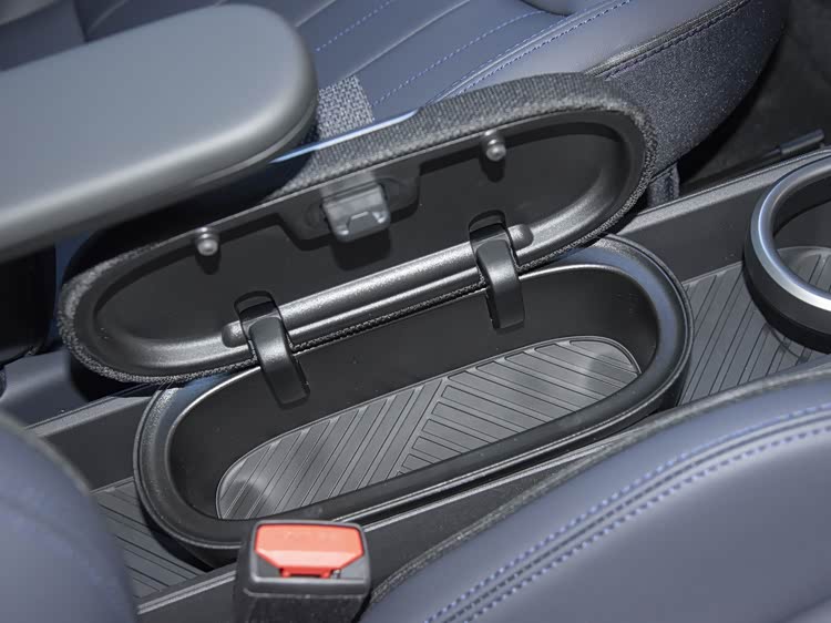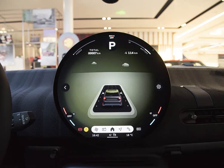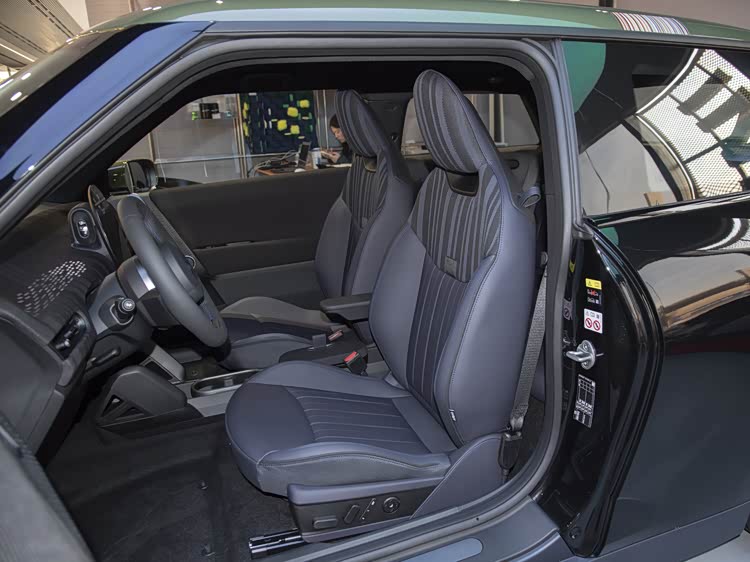 内饰的暗调条纹织物,在视觉上形成了一种低调的纹理感,与方向盘的彩色织带形成对比,既突出了设计师标志,又避免了过度花哨。运动座椅的黑蓝双色组合,不仅实用耐脏,也通过蓝色调带来了些许清新感。OLED圆屏的专属背景,可能包括条纹图案或手绘元素,这些图像在驾驶过程中会显示,为车内环境增添个性化氛围。