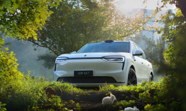 从外观来看,问界M7延续品牌“鲲鹏展翼”的设计哲学,其前脸通过横向延展的线条与低趴式机盖造型,营造出沉稳中带有动感的视觉姿态。格栅与镀铬饰条采用外阔式布局,配合名为“星环双翼”的大灯组,在保持简约风格的同时,强化了整车辨识度与科技气质。