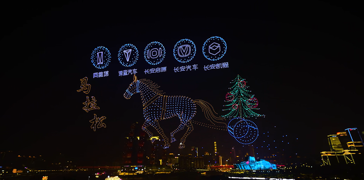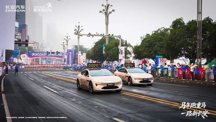 一场赛事,串联起企业与城市的深厚羁绊。自20世纪80年代扎根重庆,长安汽车便与这座城市同频共振、共生共荣。作为龙头企业,长安汽车充分发挥链长作用,带动上下游产业协同发展,而重庆加速建设的“33618”现代制造业集群体系,也为长安汽车的创新发展注入强劲动能。2026重马开赛前夜,长安汽车联动无人机灯光秀,以璀璨光影勾勒城市天际线,打出“一起破3 一路新长安”的美好期许,用科技与艺术的融合,为赛事预热,为重庆添彩。