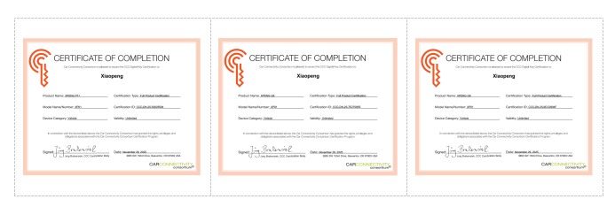 近日,全球车联领域权威组织 CCC 全球车联联盟(Car Connectivity Consortium®)公布 2025 年度 CCC Digital Key™认证名单,小鹏汽车旗下的P7+、G6、G9车型的数字钥匙成功通过认证,跻身全球首批获此认证的中国车企行列。这一成果不仅标志着小鹏汽车数字钥匙技术达到全球严苛标准,更彰显了中国汽车品牌在智能车联领域的技术实力与创新高度。