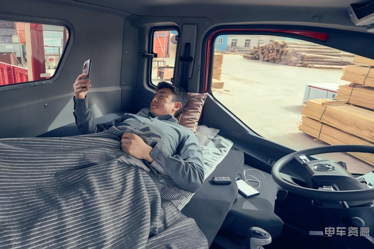 驾驶室空间是司机的“第二个家”。飞碟EW7拥有同级最宽的驾驶室,内宽达到1900mm,其座椅是联排设计,非常平整,秒变一张宽敞舒适的卧铺,为等待装卸货或长途奔波需要小憩的司机提供绝佳休息环境。
