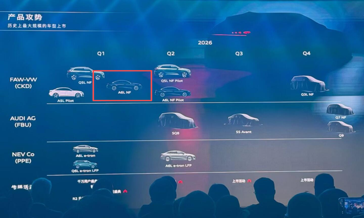 2025年, 奥迪A6L(参数|询价)累计销量超17万辆,领先奔驰E级(130810辆)、宝马5系(116173辆),而26年为了实现更进一步,全新一代奥迪A6L(C9)前来助力。新车将换装最新家族化设计语言,内饰配备三联屏,动力上搭载第五代EA888 2.0T以及全新3.0T V6发动机,预计将于1季度末正式上市。日前,已有网友拍到了全新一代奥迪A6L现身街头的实车图,下面我们就来提前了解一下。