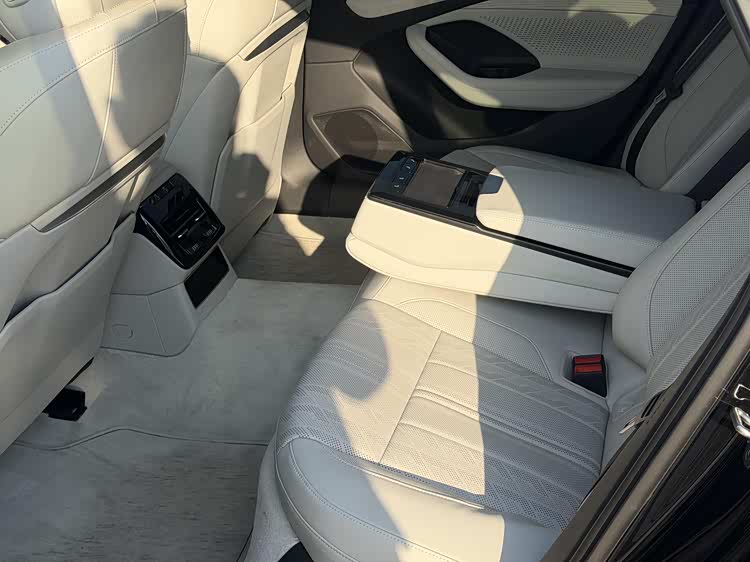 同时车内采用白色风格,并加入大量皮质/麂皮包覆,再配合木纹饰板、环绕式氛围灯等,继续强调豪华感。同时还可以看到四辐式多功能方向盘、滑块式换挡机构、双手机无线快充、后排中央扶手+触控屏等配置,还有望配备可调光全景天幕。