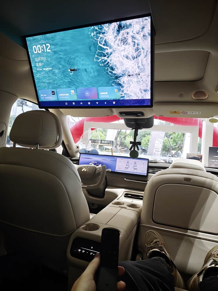 从停车场开上路,按惯例,我依旧先坐进了后排。由于前一天我刚试完泰山,一上车就会有明显的对比体感—— 智己LS9这套底盘在舒适模式下的体验是更好的。底盘同样会更软糯,滤震更干净,没有余震、碎震,但并不是硬邦邦的类型——像包了一层面粉一般,又没有完全滤净所有的路面信息,非常适合日常使用,没有船感,也不晃悠。