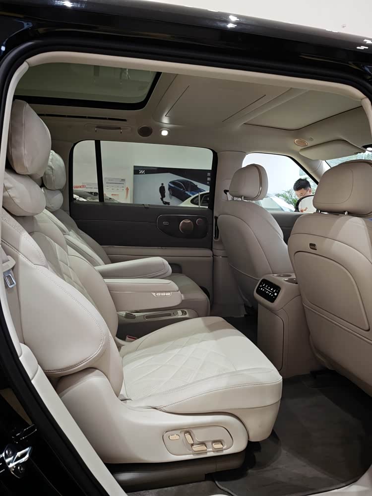 空间是合格水平,和岚图泰山不分伯仲——二排极限位置比泰山大一些、三排小一些,基本就是布置的区别,内部总体空间应该差不多,后备箱空间也都是标准的水平。对我170cm 的身高来说,在二排腿部空间比较宽适的情况下,坐进三排我的膝盖就要顶着靠背了,后轮的大轮包也有点侵占横向空间,好在坐姿还不错。
