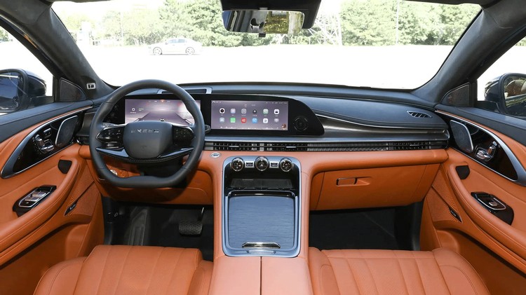内饰方面,新车提供雅银黑、月影棕两款配色,采用了双12.3英寸曲面联屏、Lion5.0系统、高通骁龙8155芯片等配置,支持智能语音交互、苹果CarPlay、华为HiCar及萌驾手机互联。虽然硬件配置不错,但整体UI设计和交互逻辑还有提升的空间。