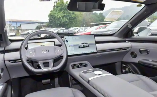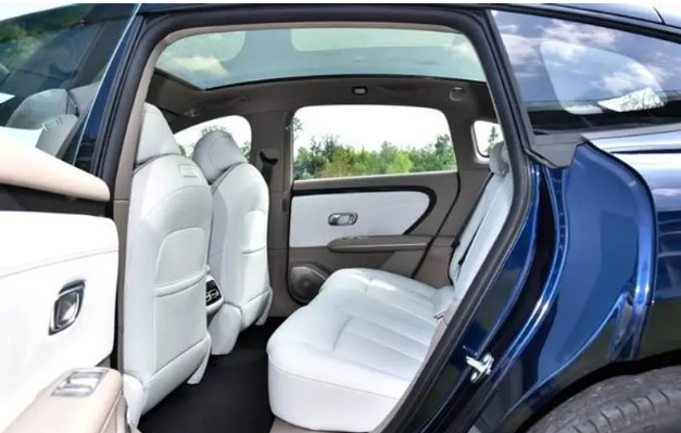 在尺寸方面,新车的长宽高分别为4885mm、1916mm和1496mm,轴距为2922mm。虽然作为一款中大型车,其尺寸在同级中并不占优势,但纯电平台打造的轴距为车内提供了良好的纵向空间感。此外,整车的转弯半径合理,5.5米的转弯半径确保了在日常城市路况下的灵活性。结合实际体验,身高1.75米的乘客在前排座椅调节至舒适坐姿后,换到后排乘坐,腿部空间约为2拳,头部空间约为1拳,空间感较为宽裕,且前排座椅底部留有空隙,小腿可以轻松伸展,带来更为舒适的乘坐体验。