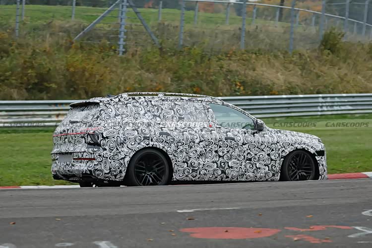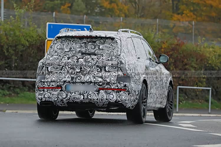 尾部造型方面,车顶配备有尺寸比较大的扰流板以及高位刹车灯,熏黑的尾灯组采用了贯穿式设计,有效拉伸了车尾横向视觉宽度,不过由于伪装程度比较高,灯组的细节还无法判断;下包围部分配额必有内凹的牌照框,排气管可能会采用双边共四出布局。