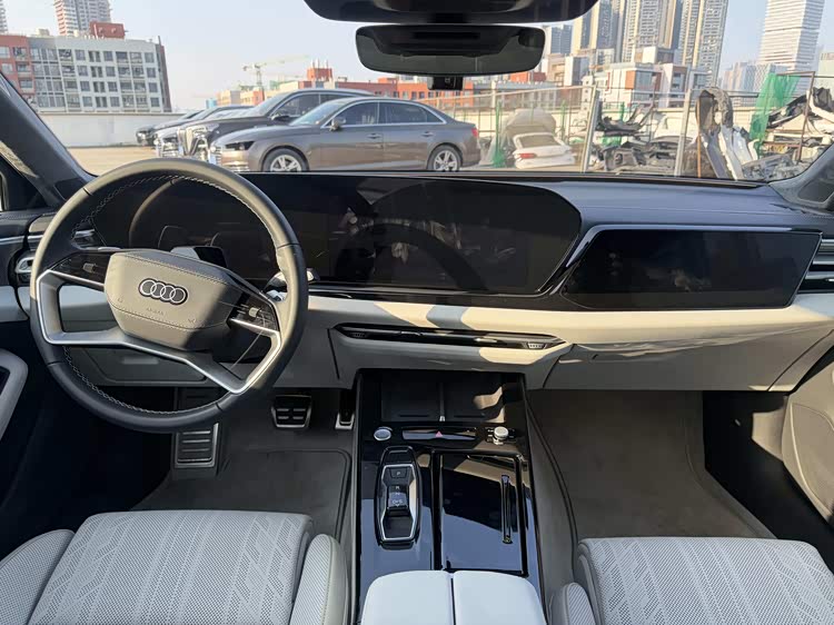 用料和氛围依旧是A6L擅长的部分。白色内饰基调,皮质和麂皮大面积覆盖,配合木纹饰板和环绕式氛围灯,豪华感走的是“克制但到位”的路线。四辐方向盘、滑块式换挡、双手机无线快充、后排中央扶手触控屏,这些配置并不是炫技,而是明确围绕高频使用场景展开。可调光全景天幕如果最终落地,对后排乘客的体验提升会非常直接。