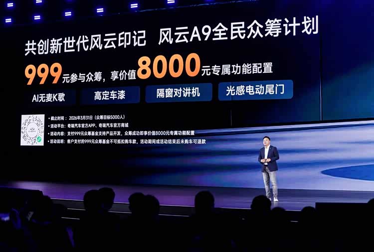 车家号·0浏览·2026-01-19 22:19 · 广东日前,我们从官方渠道获悉,奇瑞风云 A9 开启全民众筹计划,目标 5000 人,用户可 999 元参与众筹,享价值 8000 元专属功能配置。