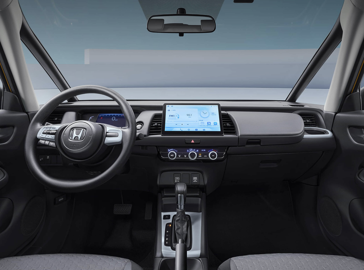 全新本田飞度的车内布局变化不大,采用了大面积织物材质的铺陈,还加入了银色金属元素的点缀,车顶和地毯还都加入了灰色的植绒面料,还配备了风格迥异的空调出风口设计,每一处细节都展现出了本田车的设计精髓。标准的T字形中控台配备了经典的双幅式多功能方向盘,升级10.1英寸悬浮式中控屏,支持苹果CarPlay、华为HiCar、百度Carlife手机互联功能。还配备了经典的LCD仪表盘设计。配置方面,新车标配了VSA车身稳定系统、胎压监测、坡道辅助、一键启动、独一无二的魔术座椅、车联网系统、车载Wi-Fi。