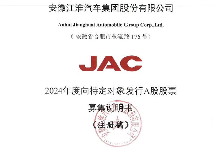 ▲江淮发布2024年度向特定对象发行A股股票募集说明书
