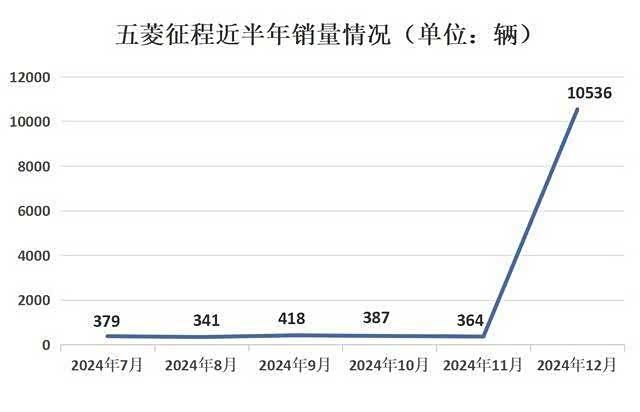 然而,从五菱征程以往的销量数据来看,其自2023年以来的月销量一直稳定地保持在几百台的水平。到了2024年,1至11月的平均月销量仅为三四百台。然而,令人意外的是,12月的销量却突然暴涨,达到了惊人的28倍。那么,究竟是什么原因使得五菱征程能够突然之间取得如此巨大的销售成功呢?