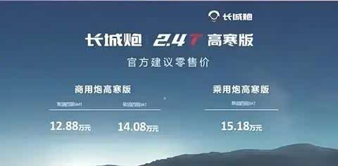 长城炮2.4T高寒版的亮相,标志着长城汽车在越野车市场的布局又迈出了重要一步。此次推出的车型分为商用和乘用两种版本,价格区间为12.88万至14.08万元以及15.18万元。