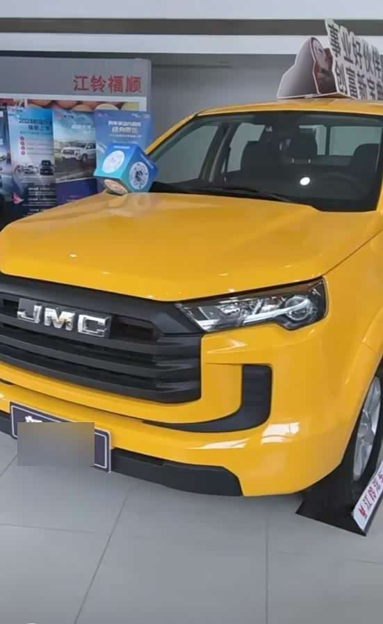 2023款江铃新宝典在外观设计上迎来了显著变化,尤其是前脸部分。它摒弃了老款域虎3的设计风格,转而向家族中的域虎7看齐。最明显的变化在于中网部分,采用了大尺寸长方形的造型,并配以三横幅装饰,上方则镶嵌着JMC品牌标识,整体视觉效果更加大气磅礴。两侧前大灯的轮廓也与域虎7和9保持一致,与中网紧密相连,形成了一体化的设计效果。保险杠底部的黑色装饰条延伸至两侧大灯下方,为前脸增添了一丝硬朗与威武的气息。
