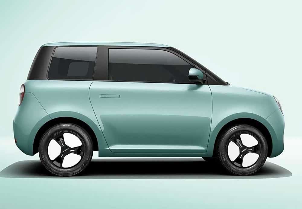 车身设计上,糯玉米延续了纯电小车一贯的圆润造型,黑色的B、C柱营造出悬浮车的视觉效果,增强了立体感。轮毂风格与宝骏KiWi EV相似,透露出一种复古韵味。