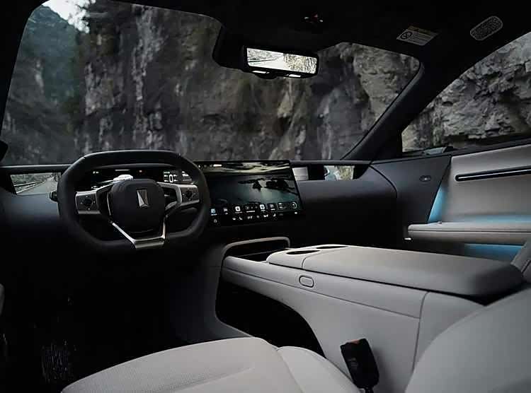 车辆内部装潢完美还原了概念车的原始设计,并保持了简洁的设计理念。采用360°环绕座舱和Gentle Tech的简洁设计语言,环抱式中控台搭配35.4英寸全景宽屏和15.6英寸中控显示屏,营造出科技感十足的车内环境。此外,车辆两侧配备流媒体后视镜,中央区域展示驾驶相关信息。搭载华为鸿蒙HarmonyOS 4车机系统和华为高级智能驾驶解决方案2.0,提供智能驾驶辅助功能。独特的多功能方向盘和拨杆式换挡系统为中控台增添亮点,为驾驶员带来全新的操作体验。高端车型还配备车顶激光雷达系统,支持华为乾崑智驾ADS 3.0系统,提供高速/城区智能驾驶导航、车位到车位导航辅助以及智能停车代驾等多项先进功能。