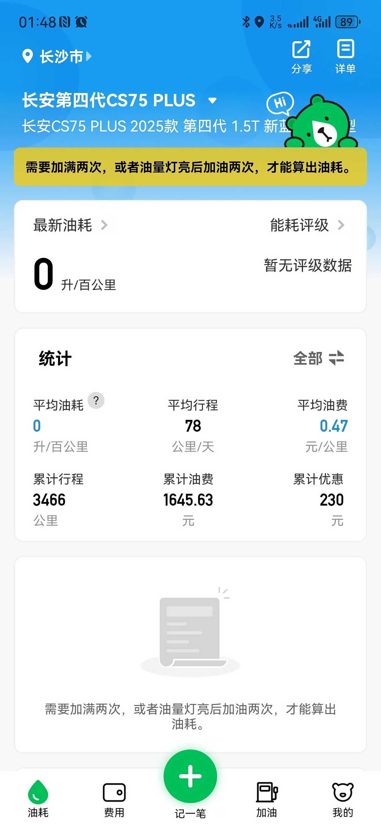 从提车到现在,我已经加了254.14升的油,油费累计达到了1645.63元。目前,我的车总行驶里程是3484公里,仪表盘上显示的剩余续航是864公里。如果按照油完全用完来算,总里程大概能达到4300公里左右(3484公里加上剩余的864公里,实际为4348公里)。这样算下来,我的车平均油耗大约是5.91升/百公里,而每公里的平均费用大约是0.38元。