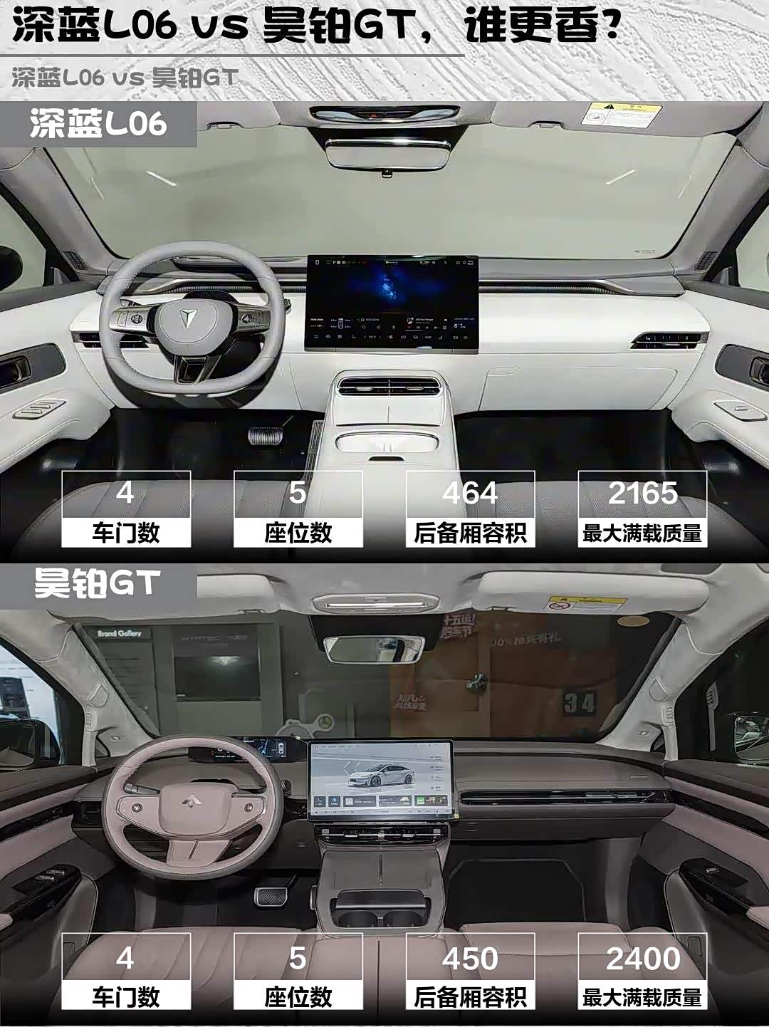 最后说价格:深蓝14.69万比昊铂便宜1.2万,但昊铂首任车主有终身免费充电权益。要我说,追求驾控选深蓝L06,看重续航豪华感选昊铂GT。你们会pick哪台?