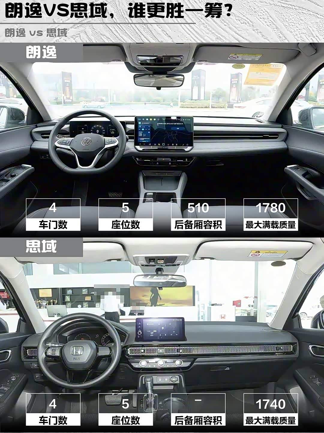 ▪️配置控:朗逸多花1千块多了全速ACC+车道保持,思域得加钱上高配才有