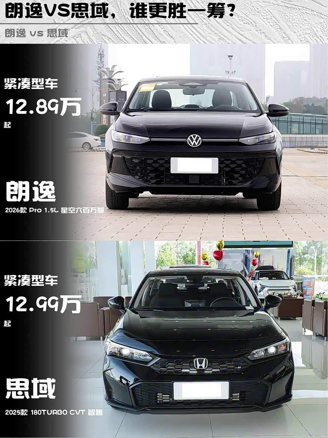最近身边好几个朋友在纠结选车,预算13万左右,朗逸2026款 Pro 1.5L 星空六百万版和思域2025款 180TURBO CVT 智趣到底怎么选?作为深度体验过两台车的“老司机”,来聊聊真实感受!🚗💨