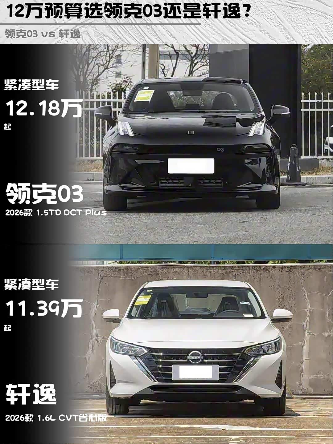 最近在纠结12万级家轿选运动派还是务实派?深度体验了2026款 领克03(参数|询价) 1.5TD DCT Plus和轩逸1.6L CVT省心版,这两台性格截然不同的车简直像两个平行宇宙!🔥