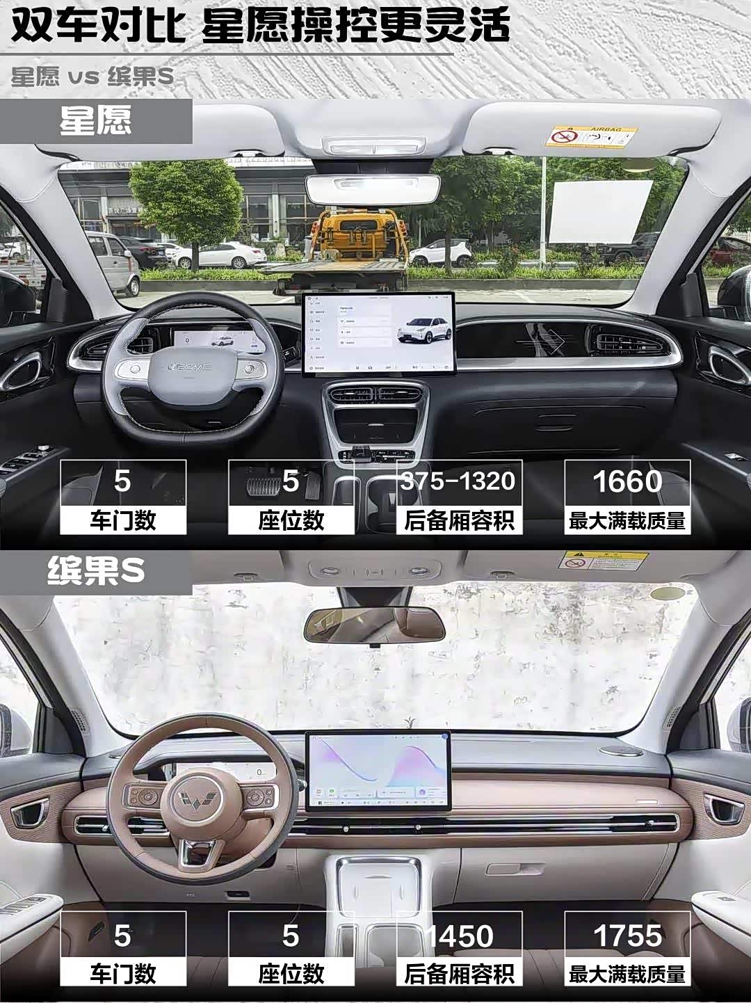 星愿14.6英寸大屏+360全景影像碾压缤果S的倒车影像!语音控制能调座椅加热这种细节很实用。但缤果S的540度透明底盘对新手更友好,自动泊车识别超精准。