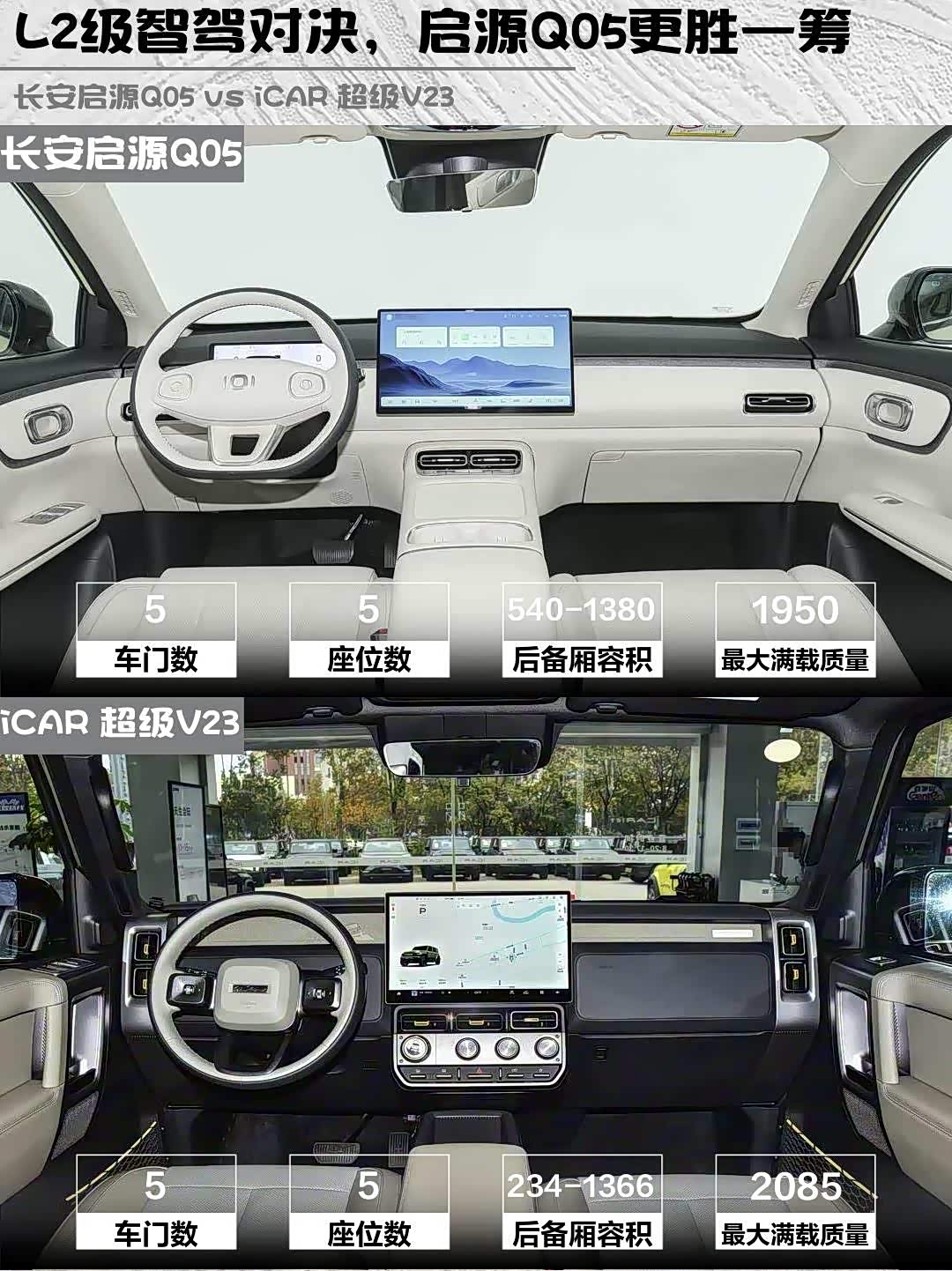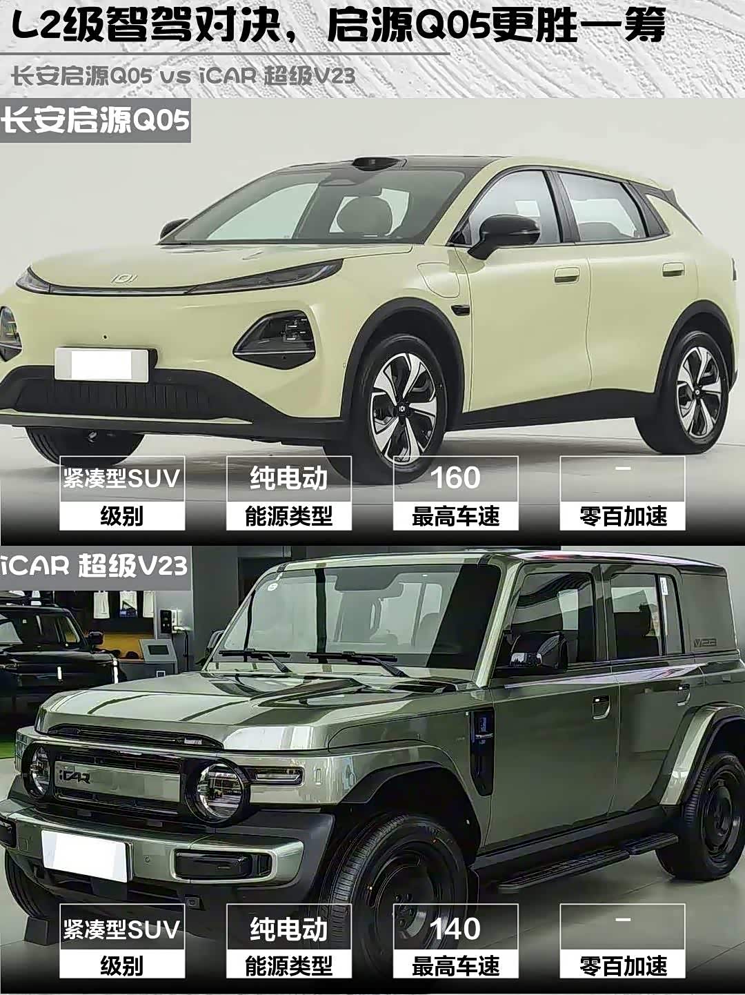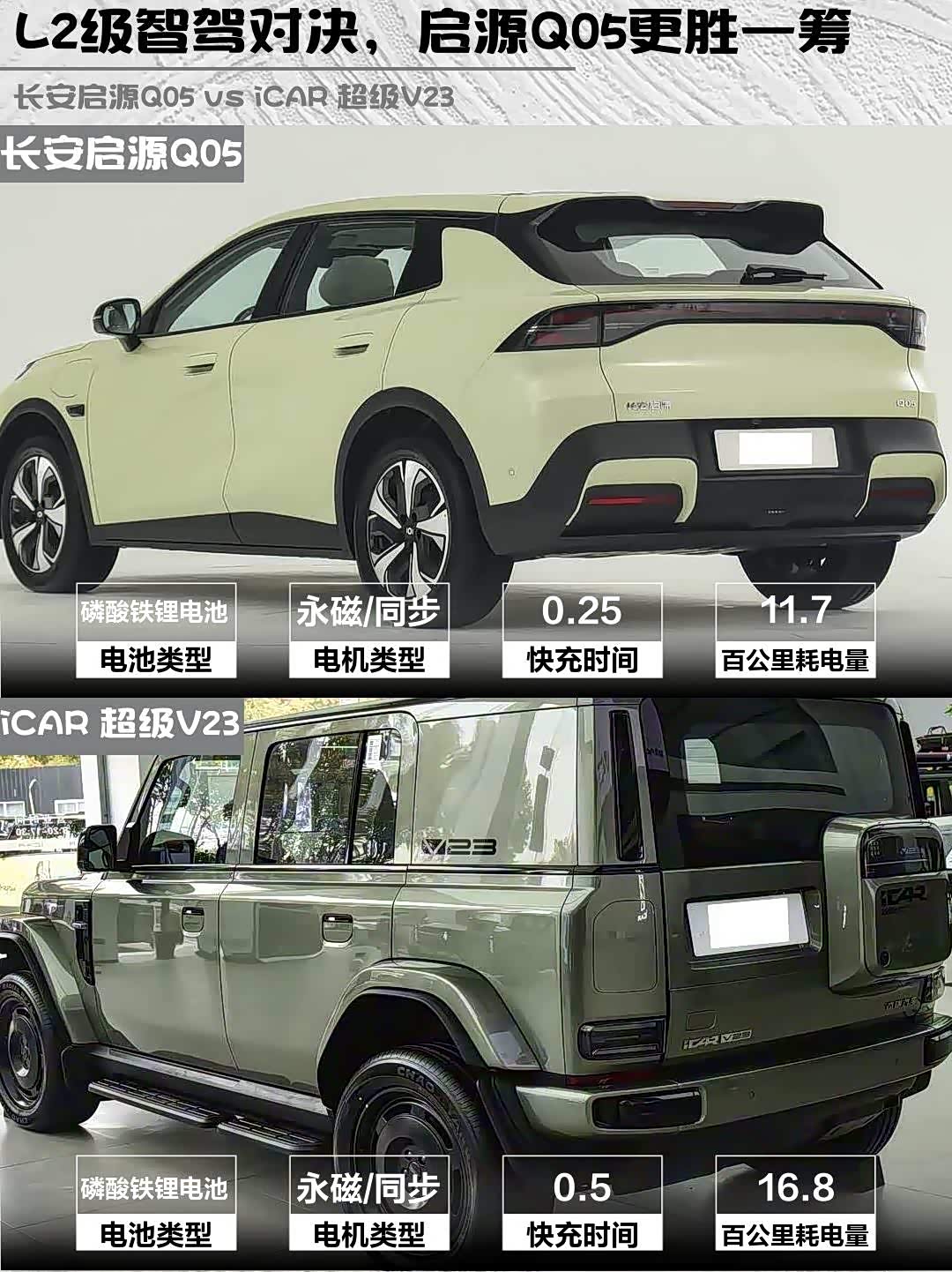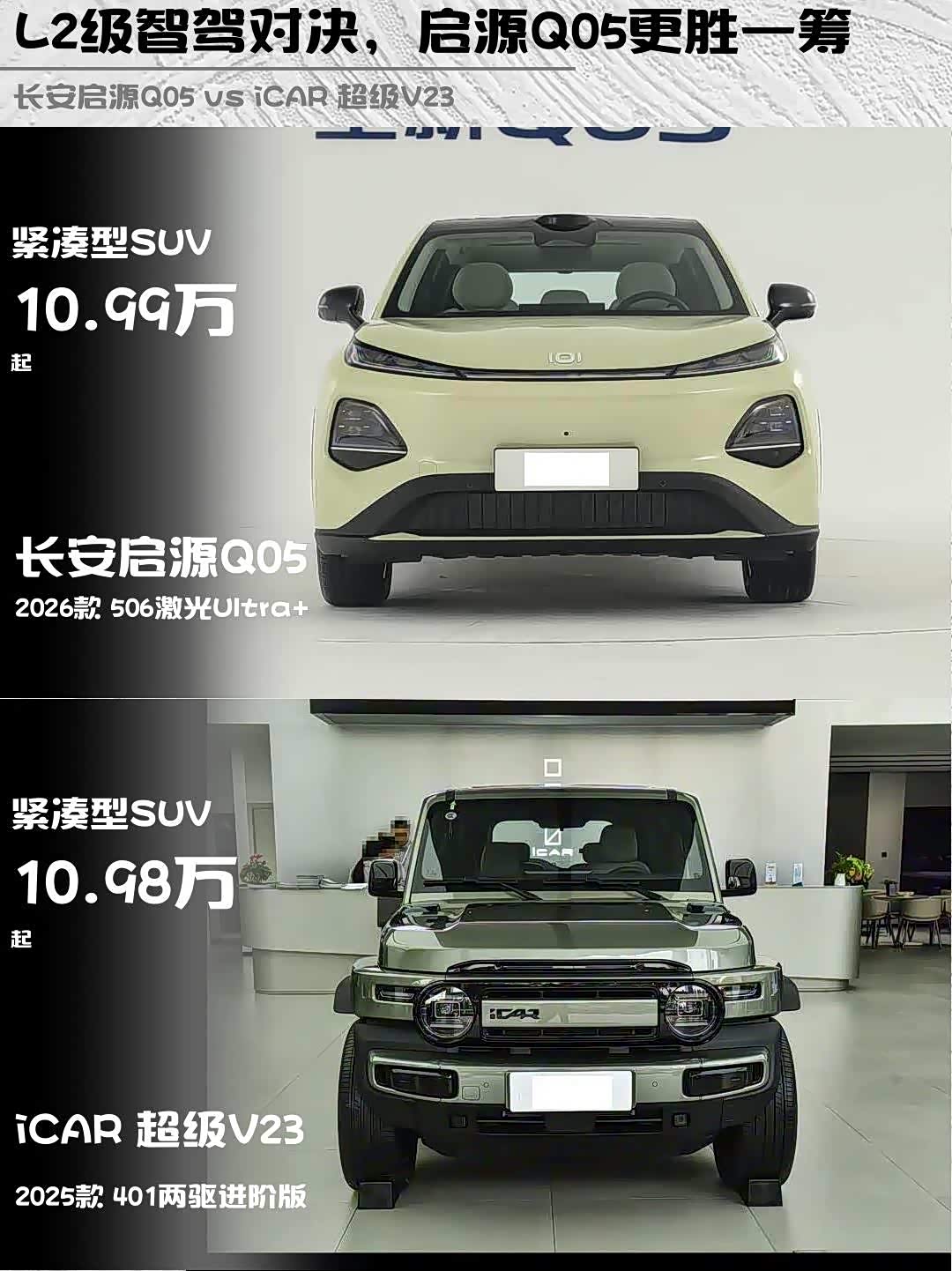 车家号·0浏览·2026-01-20 08:37 · 北京最近深度试驾了两款10万级纯电SUV——长安启源Q05 2026款 506激光Ultra+和 iCAR 超级V23(参数|询价) 2025款 401两驱进阶版,发现这两台车完全走的是不同路线!给纠结的兄弟们来个硬核对比🆚