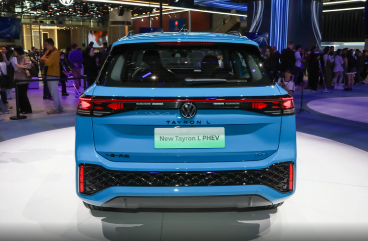 车身形态修长且充满力量感,就是一款标准的家用SUV,传统门把手得以保留,关于这点必须给个好评,原厂配备19英寸熏黑轮毂,未来应该会有其他轮毂造型可选。后轮眉微微向外隆起,营造出宽体车身的视觉效果,外后视镜和窗框均经过熏黑处理,前翼子板也有专属R标识,至于车身尺寸可以暂且参考一下燃油车,轴距为2791mm。探岳L PHEV新增加一款名为海湾蓝的车漆颜色,配合其他熏黑设计共同提升运动气息。