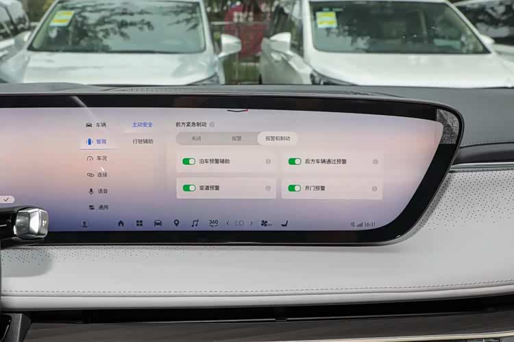 赛那采用的是真皮方向盘,入门款车型采用的是塑料材质,顶配车型支持方向盘电动调节功能,换挡方式全系均为机械挡把,具备一定的操控乐趣。低中配采用4.2英寸非全液晶仪表盘,高配车型配备的是12.3英寸全液晶仪表盘。其次,赛那入门款采用10.25英寸中控屏,其它车型均采用12.3英寸中控屏,并且内置的是高通骁龙8155芯片,功能上比入门款多了4G网络、前排语音识别、声纹识别、OTA升级等功能。新车全系支持L2级辅驾,标配了全速自适应巡航、倒车影像等功能,以及带车道偏离预警等功能的主动安全预警系统。