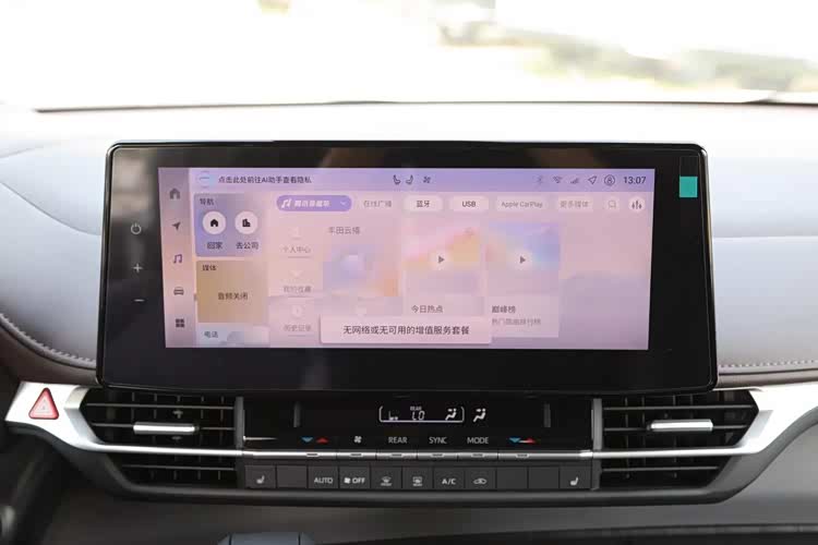 其次,格瑞维亚低配车型采用塑料方向盘,其它车型均配备真皮方向盘,而仪表盘也有4.2英寸非全液晶仪表盘和12.3英寸全液晶仪表盘两种,中控屏全系采用TFT屏幕材质,有10.25/12.3英寸两种屏幕尺寸,中高配车型有高通骁龙8155芯片的加持,还具备4G网络、主驾语音识别等功能。新车也全系支持L2级辅驾,采用的是Toyota Pilot辅驾系统,支持倒车影像、全速自适应巡航等功能。