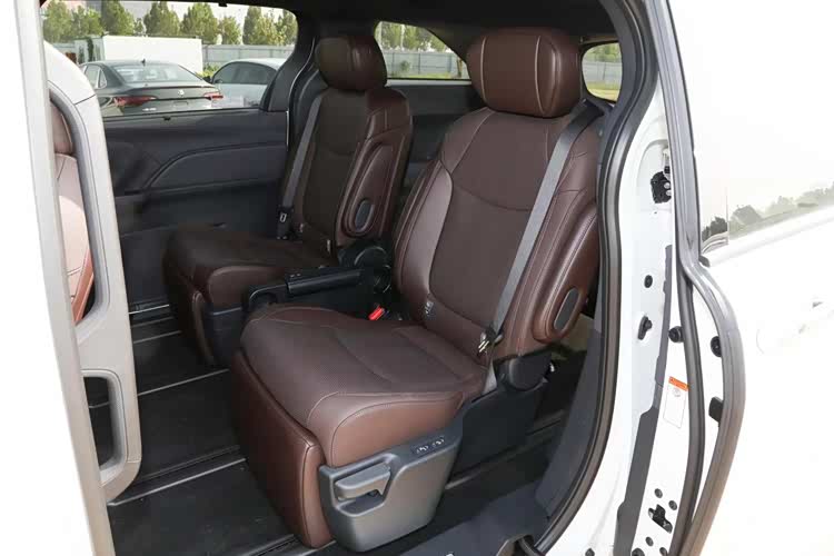 广汽丰田旗下的赛那是一款中大型MPV,全系10款车均为油电混合车型,它的外观设计颇具辨识度,车头采用类似小型帆船桨的格栅,而造型独特的前灯组加入了银色镀铬元素,车辆两侧配备了电动开闭式侧滑门,车门滑轨采用隐藏式设计,车顶带单天窗,高配车型则是分段式可开启全景天窗,尾灯造型犹如死神镰刀,搭配带红色雾灯的熏黑式保险杠,整体外观比较耐看。赛那全系采用2+2+3布局的大7座布局,乘坐空间比较充足,入门款采用织物材质,其它车型采用真皮+仿皮的混搭材质,坐上去较为舒适,高配车型还增加了前两排座椅的加热、通风等功能,除入门款外的其它车型仅支持前排加热等功能,而且除豪华福祉版外的其它车型还标配了二排小桌板,后备厢常规容量为525L,将后排座椅40:60放倒后,最大能拓展到2112L,大小件年货都能轻松收纳。