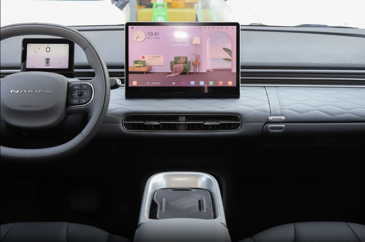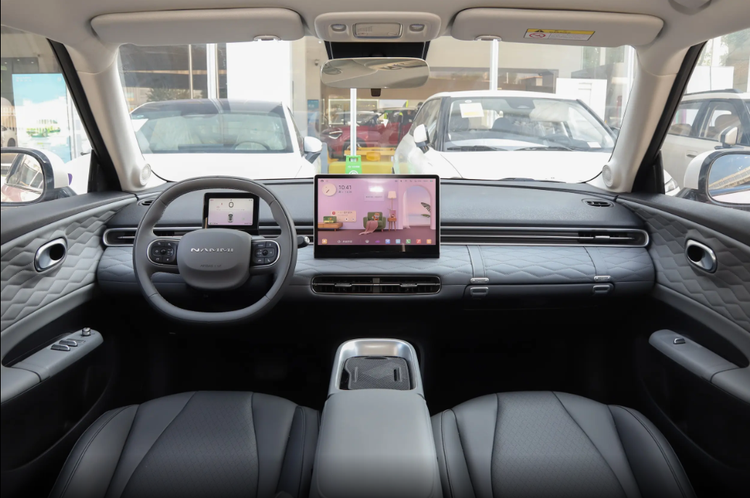坐进车内,座舱的精致感再次超出了我们的预期。中控台和门板都采用了菱格软包材质包裹,触感细腻柔软,搭配32色音乐律动氛围灯,营造出温馨又轻奢的氛围。5英寸液晶仪表+12.8英寸中控屏的组合简洁大气,车机系统反应灵敏,支持语音控制,喊一句“你好纳米”,就能轻松实现导航、调节空调等操作,对于不熟悉操作的老婆来说非常友好。