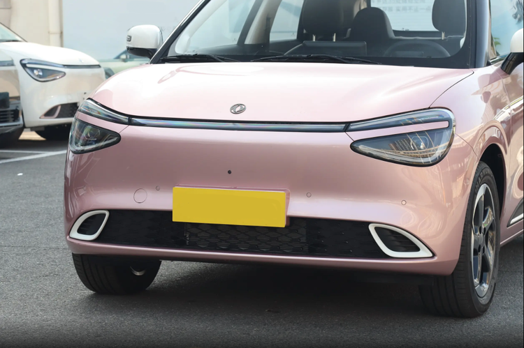 其次就是外观设计方面了,刚到4S店,老婆就被纳米01的颜值吸引住了。我们试驾的这款是“千金粉+无忧白”的配色,撞色设计时尚又灵动,完全符合年轻人的审美。车头的水滴式前灯搭配斜向扩散的灯带,显得格外精致,下方扁平的进气口和三角形导流口,又增添了一丝运动感。