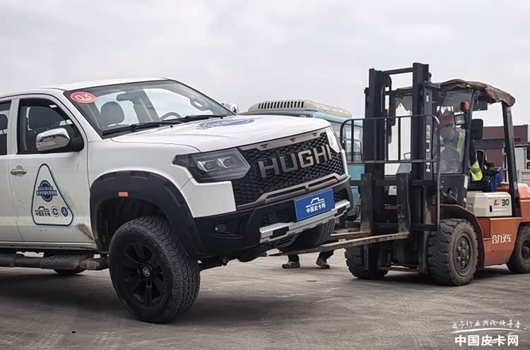 相比于其他实验,该项目的测试方法较为简单。按照测试规程,在试验时,先将车辆空载,用叉车轮流将一侧前轮和后轮抬起,一直到其他车轮离地前,测量被抬车轮下沿离地高度,并进行对比,最终得出成绩。