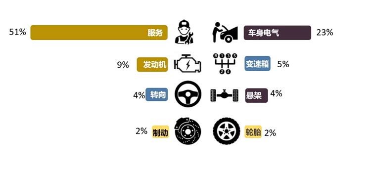 从投诉问题分布来看,2025年度,服务和车身电气依然是被投诉最多的两大问题,合计投诉占比高达75%。“价格战”之下,车企们的降价导致服务投诉的大面积爆发。此外,经销商不退订金、承诺不兑现和由车机老旧不升级引起的服务问题也连带推高了服务投诉指数。车身电气类问题投诉指数占比达到23%,比亚迪、广汽本田、奇瑞汽车成为直接推手。