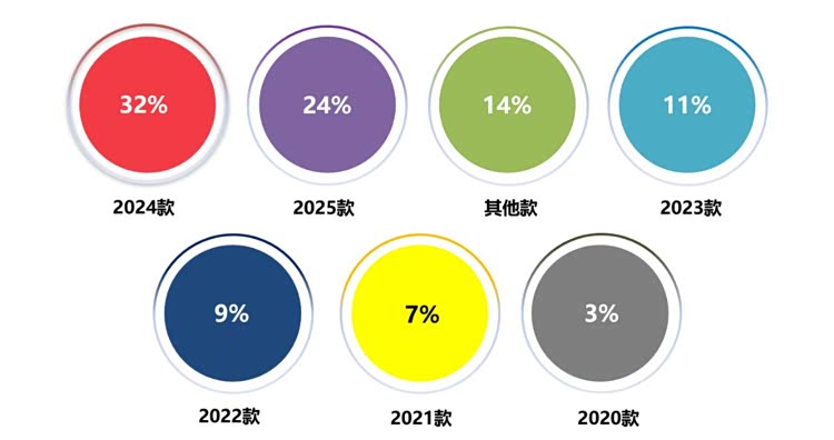 五、从车型年款来看,最近两年的新车和其他款是投诉的集中爆发区,合计投诉占比高达70%。其中,2024款车型投诉指数占比最高,达到了32%;比亚迪多款车型迭代增配是主要槽点。2025款车型紧随其后,投诉点同样集中于比亚迪多款车型迭代增配。其他款车型投诉占比14%,英朗转向卡滞异响、飞度发动机异响、君威变速箱挡把总成故障等问题都遭到了集中投诉。