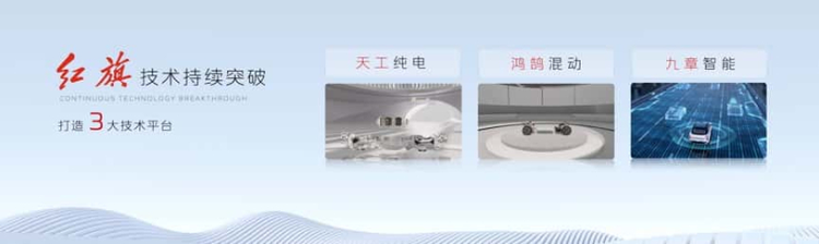 红旗品牌天工纯电、鸿鹄混动、九章智能三大技术平台