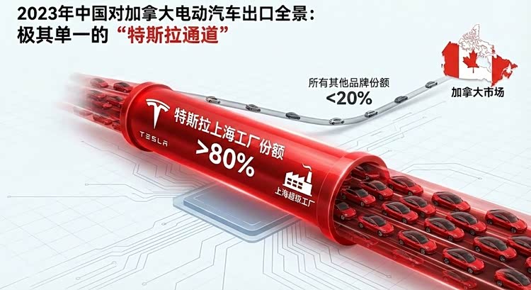 当时的景象极其单一:这其中超过八成的份额,全部来自特斯拉上海工厂。也就是说,在那场关税风暴之前,所谓“中国出口加拿大的电车”,其实绝大多数是披着“中国制造”外衣的美系品牌。