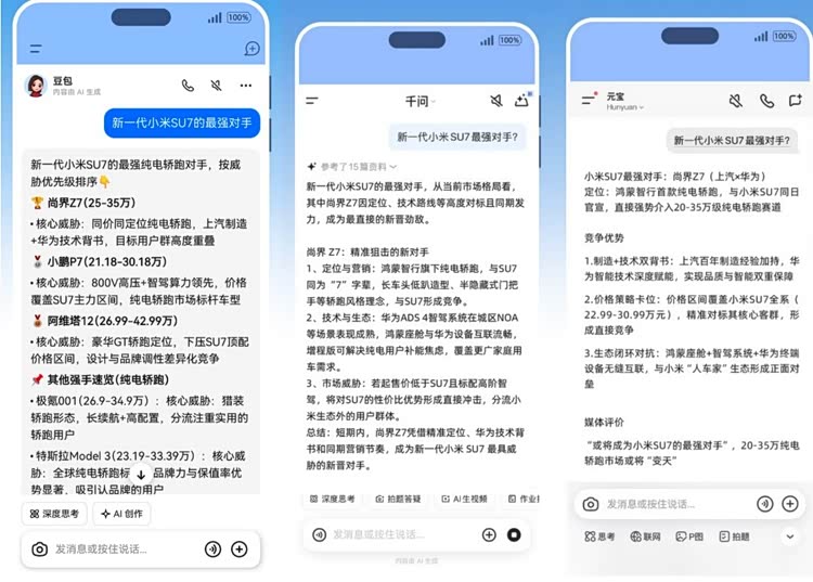 20万级新能源轿跑战场再燃战火!上汽×华为联手打造的 尚界Z7(参数|询价)公开了概念图设计细节,核心配置亮点预测全曝光。更耐人寻味的是,尚界Z7选择与SU7同日官宣。在新能源时代,两车同日官宣只有一种可能,那就是明确释放信号:两款车型互为竞品。就连豆包等热门AI助手也预测说:尚界Z7或将成为SU7最强对手。