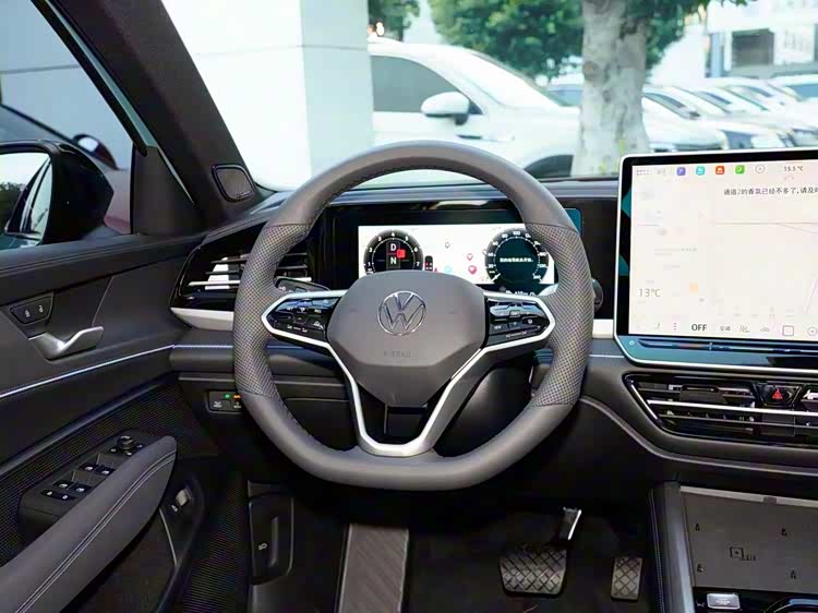 帕萨特的座舱也是环抱式布局,但它更多是展示大众数字化语言,整个中控台除了悬浮式中控屏之外,构造出的平面效果很强,与外观的前卫科技相互呼应,同样是浓厚的年轻化味道。