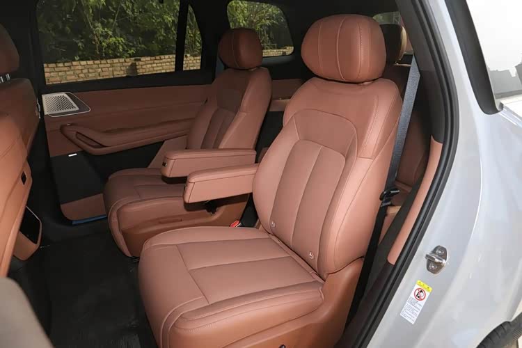 尺寸方面,腾势N8L DM的长宽高分别是5200/1999/1820mm,轴距达到了3075mm,车尾行李舱的基础容量为364L,而将后排座椅50:50放倒后,能拓展到1128L。车内的座椅采用皮质材料,并采用2+2+2的大六座布局,副驾位置配备了女王座椅和零重力座椅,三排座椅均支持基本的电调功能和加热等功能,二排座椅增加了通风、按摩等功能,前排座椅又增加了记忆等功能,另外,像前后扶手和二排小桌板,以及老板键等配置,腾势N8L DM皆为标配。